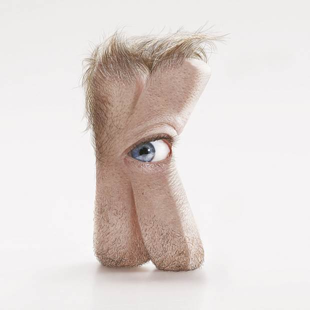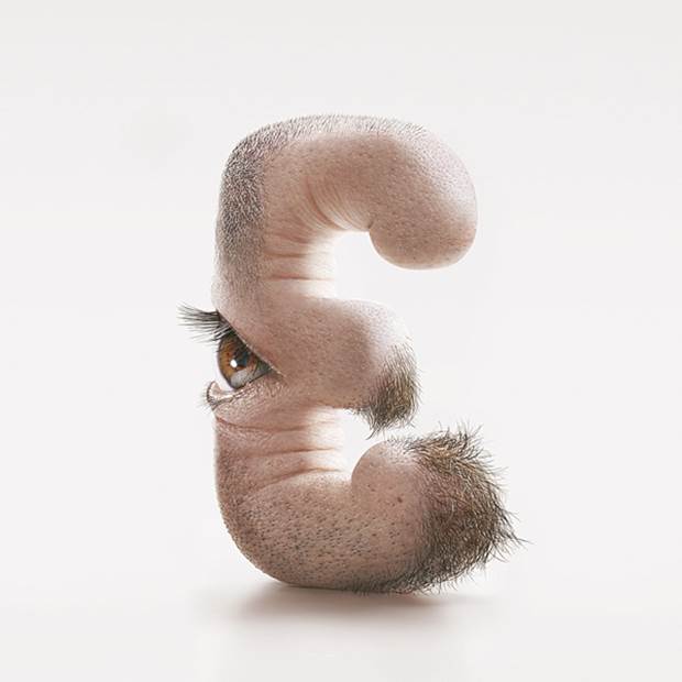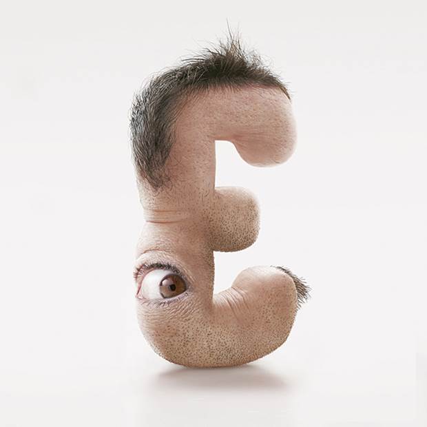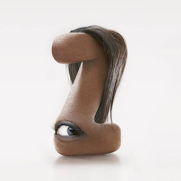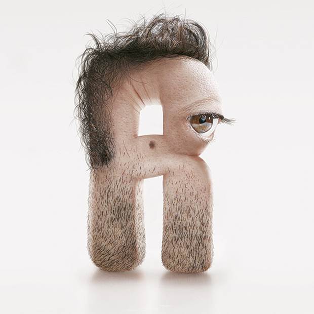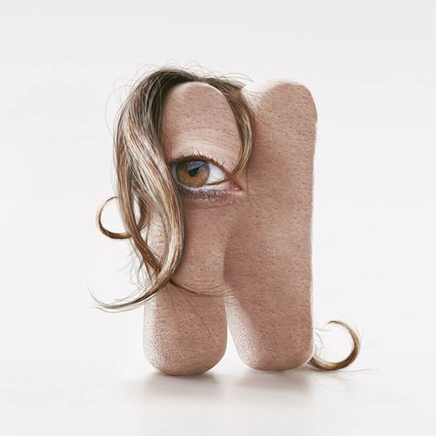 Creative art director JC Debroize has created realistic series of human-inspired typography artwork. Each unnaturally bent arrangement features a letter of the alphabet designed with human characteristics including skin, oddly placed hair, and eyeballs peering out unexpectedly from the curves and bends of each shape.