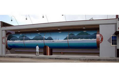 John Pugh has to be one of the most talented trompe l’oeil painters in the world. He creates unbelievably realistic murals that trick the viewer’s eye into seeing a three-dimensional scene. Pugh’s works can be seen all across the world, from New Zealand to Hawaii.