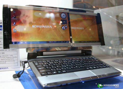 It seems that the notebook with dual screens offered by gScreen are making proselytes, Kohjinsha has tabled a netbook equipped with two 10.1-inch monitors that run laterally and overlap with a mechanism similar to Samsung Dual-Screen Digital Camera.