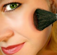 3. Apply powder and then blush your cheeks, adding color gradually. Use some blusher on the sides of the forehead and chin also.