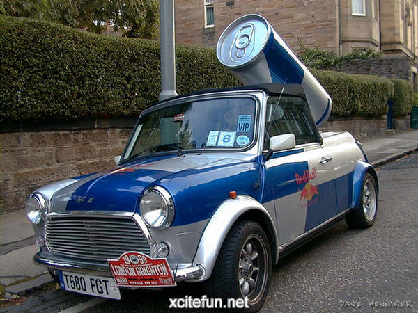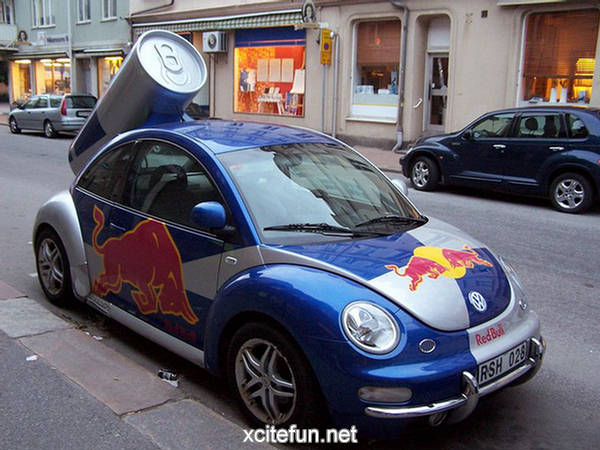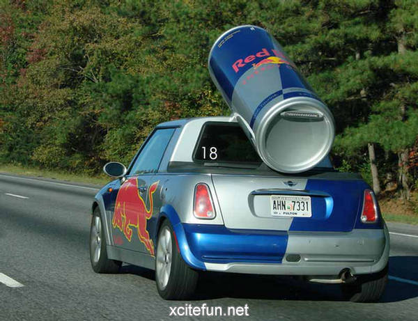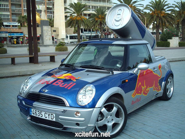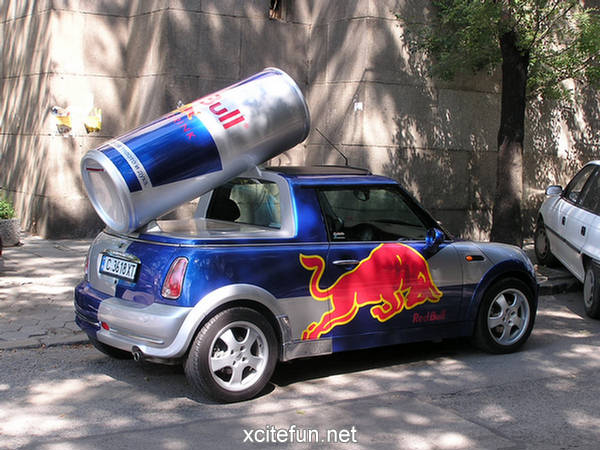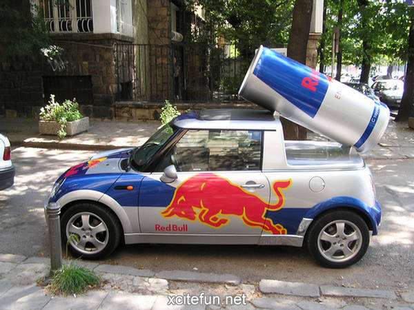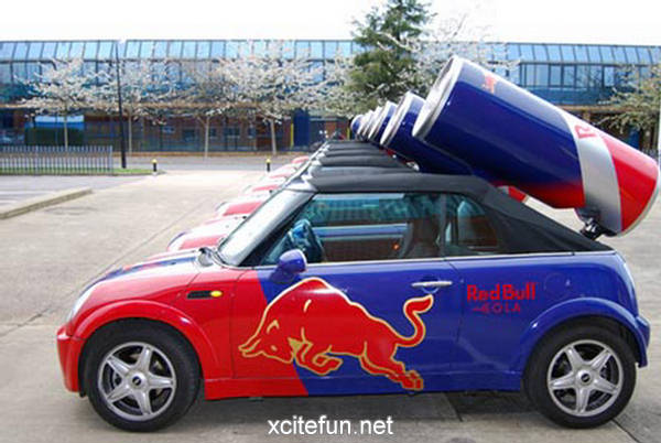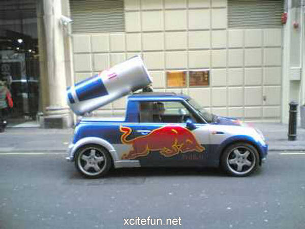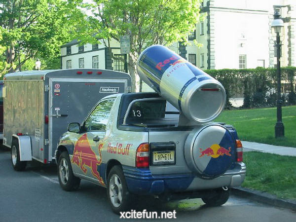 Red Bull energy drink promotional car, which is basically a modified compact car with a giant Red Bull can on top. In addition to sport sponsorships, Red Bull has developed the MET (Mobile Energy Team) programme. The teams consist of mostly college students, who drive specially designed Red Bull Racing Car. The racers are detailed with the Red Bull logo and most carry an oversized can of Red Bull on their chassis.