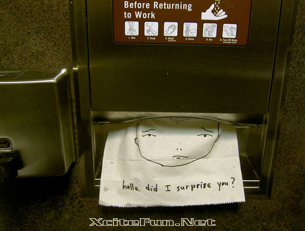 Illustrator Marc Johns has been drawing and painting his entire life. His work is often sparse, whimsical and obscure. He describes himself as a traditionalist and a minimalist, often drawing on post-it notes or as seen here, in a Starbucks bathroom.