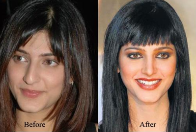 Shruthi Hassan, the daughter of legendary artiste Kamala Hassan has underwent a surgery for her trademark aquiline nose. She was honest enough to admit this in her own words, “Yes I did get a small surgery done because of my breathing problems. It was purely medical and has nothing to do with any cosmetic demands. See the image before and after.