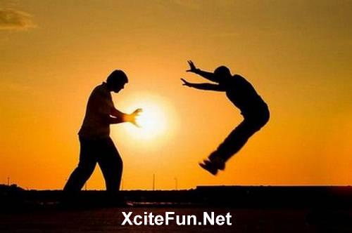 The friendly group proposes a series of images that they see would-be fighters Street Fighter and fighting style with moves taken from the game and sweetened by the effects of DIY big impact.