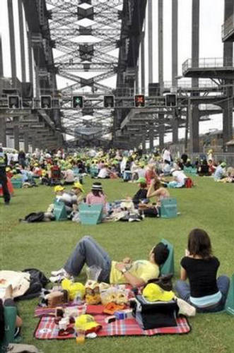 The most famous landmark of Sydney Bridge was transformed into the world's most spectacular picnic venue. The bridge deck was laid with over 10,000 square metres of turf for picnickers to enjoy on a spring Sunday morning. Picnics were about sharing plates of yummy food, relaxing and reconnecting with the great outdoors.