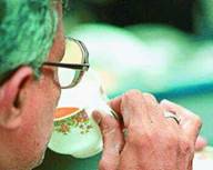 Don't drink tea - Because tea leaves contain a high content of acid. This substance will cause the Protein content in the food we consume to be hardened thus difficult to digest.