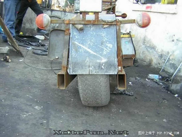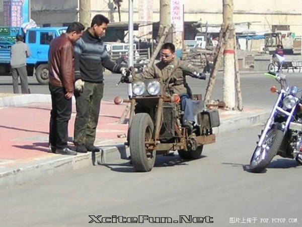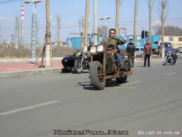 This Chinese dude proves to us all that if you want something really bad you can achieve it. He wanted a motorcycle, but he didn’t have the cash for a new one, so he built it from junk. It may not be the best-looking chopper you’ve ever seen, but it works, and that’s all that matters to this guy.